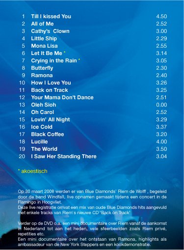 geslaagde mix van oude Blue Diamonds hits + enkele tracks van Riem's nieuwste